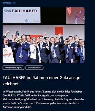 FAULHABER im Rahmen einer Gala ausgezeichnet